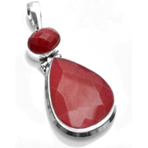 Pingente Gota e Bola - Pingente elegante composto por duas pedras de Rubi, montadas em uma estrutura de prata. Peça com formato delicado, ideal para compor um look clássico e sofisticado, podendo ser usado em ocasiões formais e casuais.